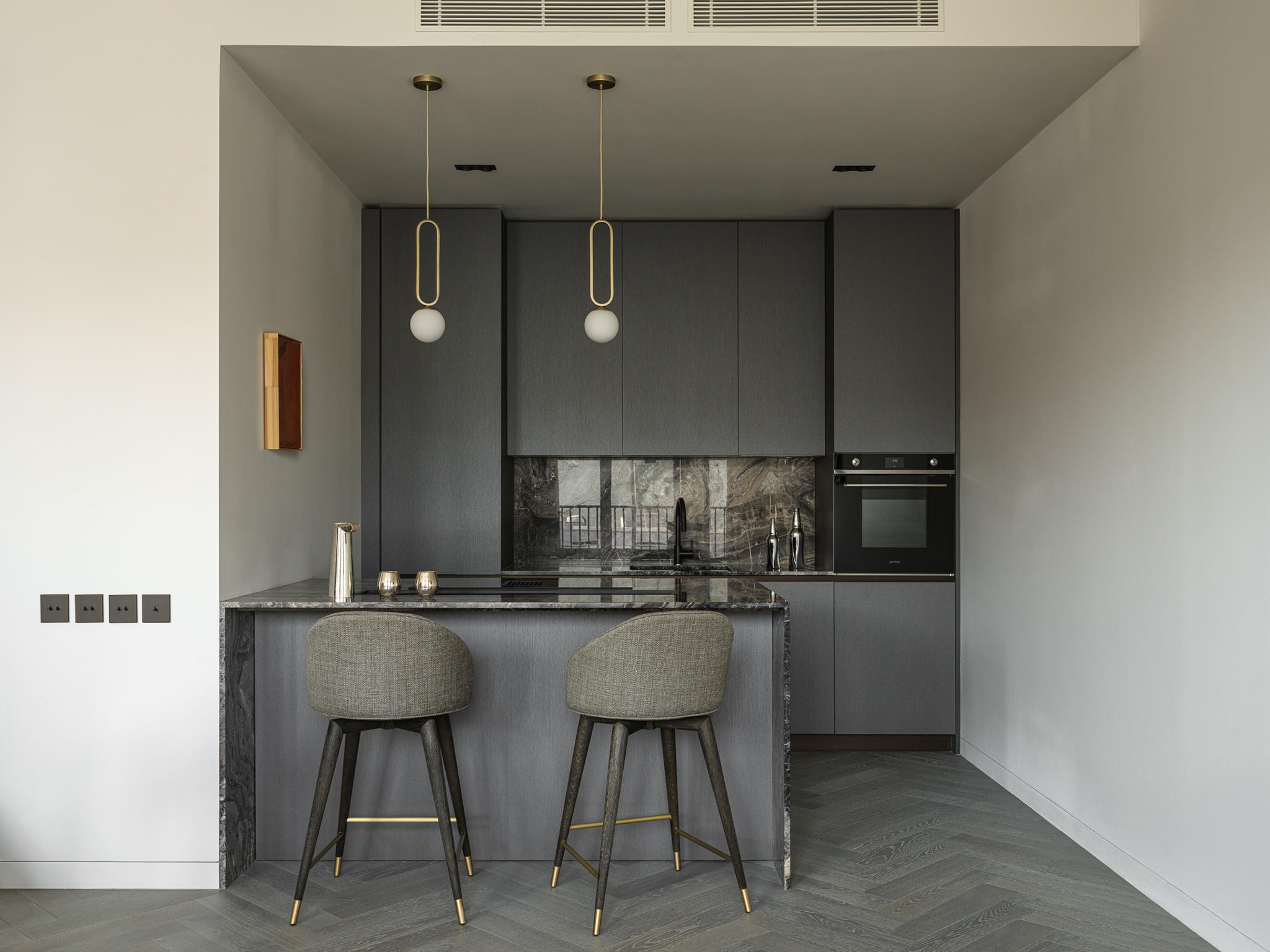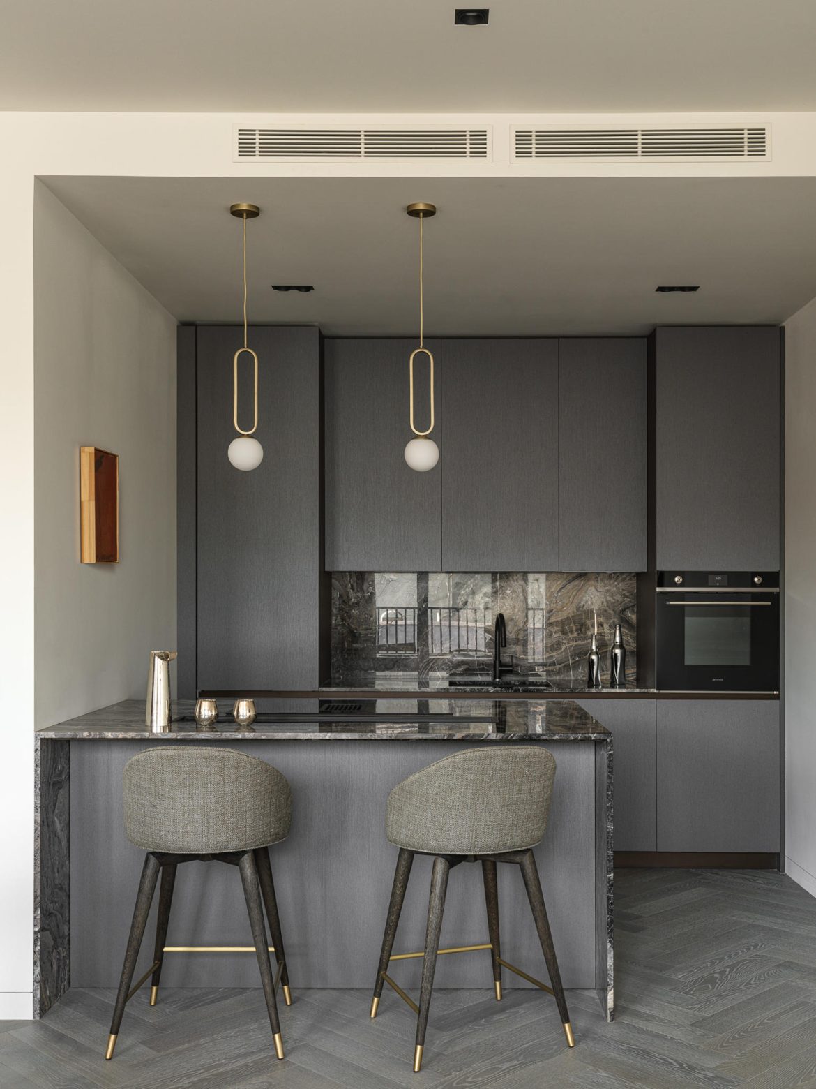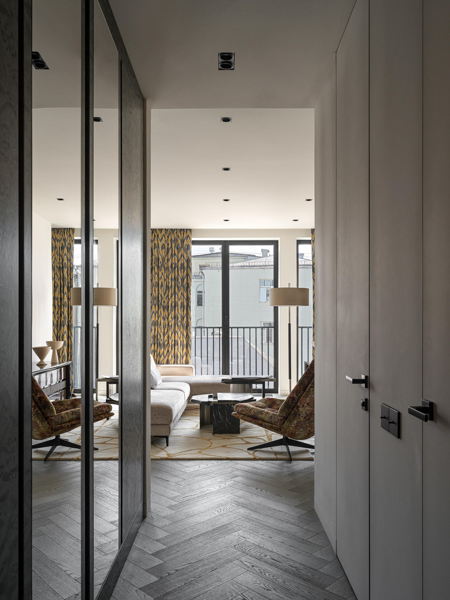 Situated in the historic heart of Moscow, within walking distance of Chistye Prudy, this apartment responds directly to its cultural context. The surrounding architecture, layered with history and urban texture, set a clear expectation: the interior had to hold presence, depth, and identity.