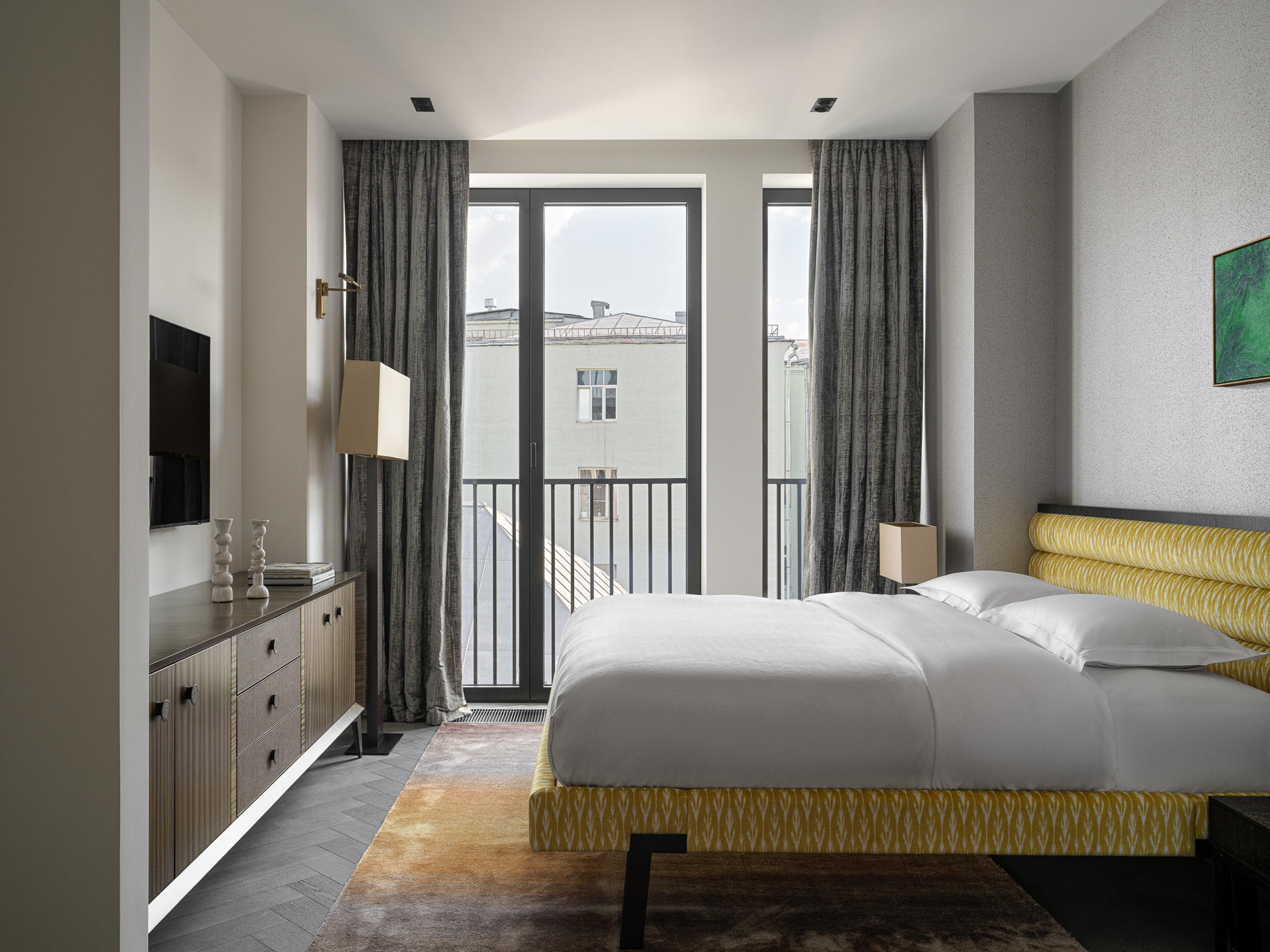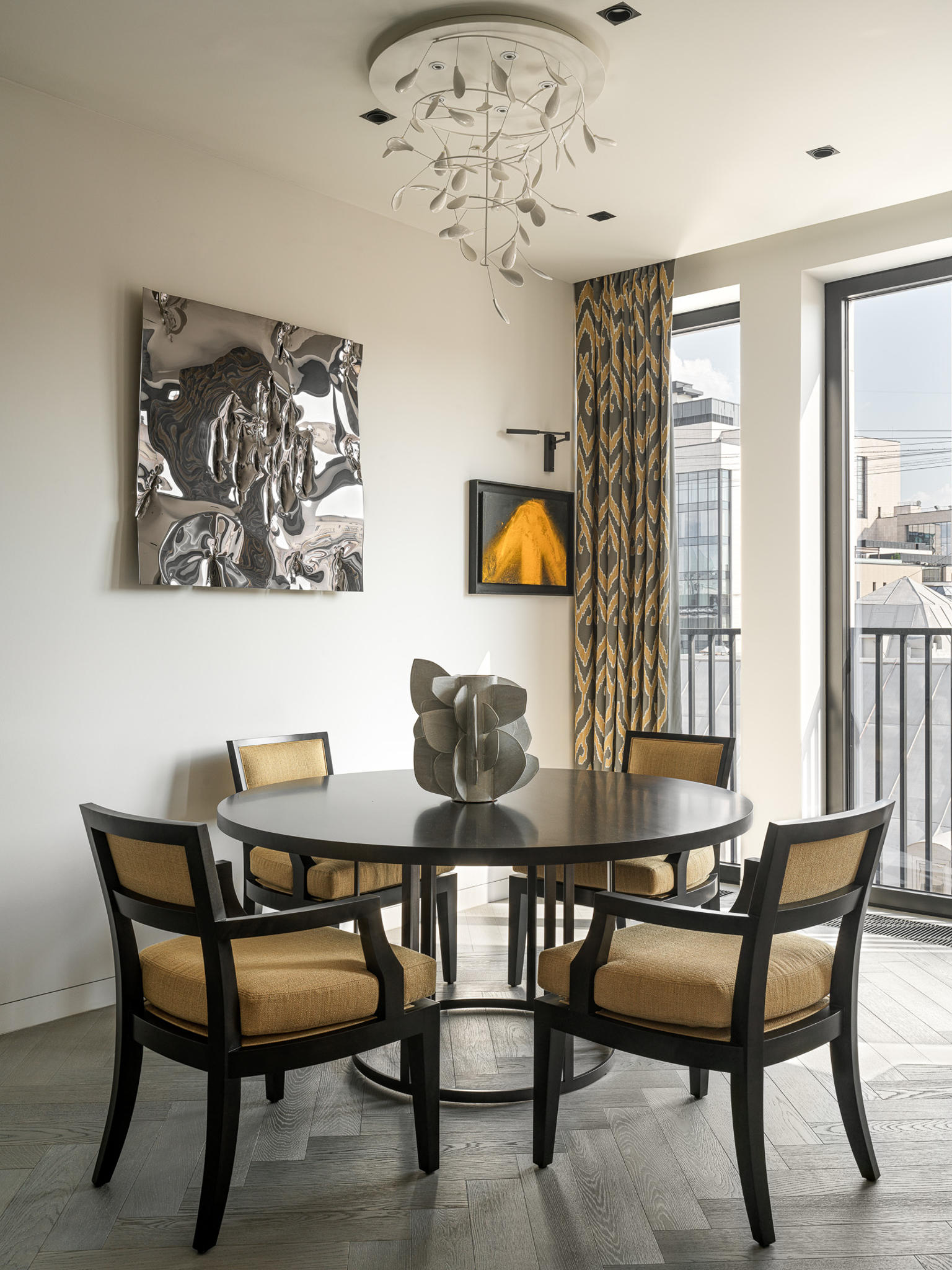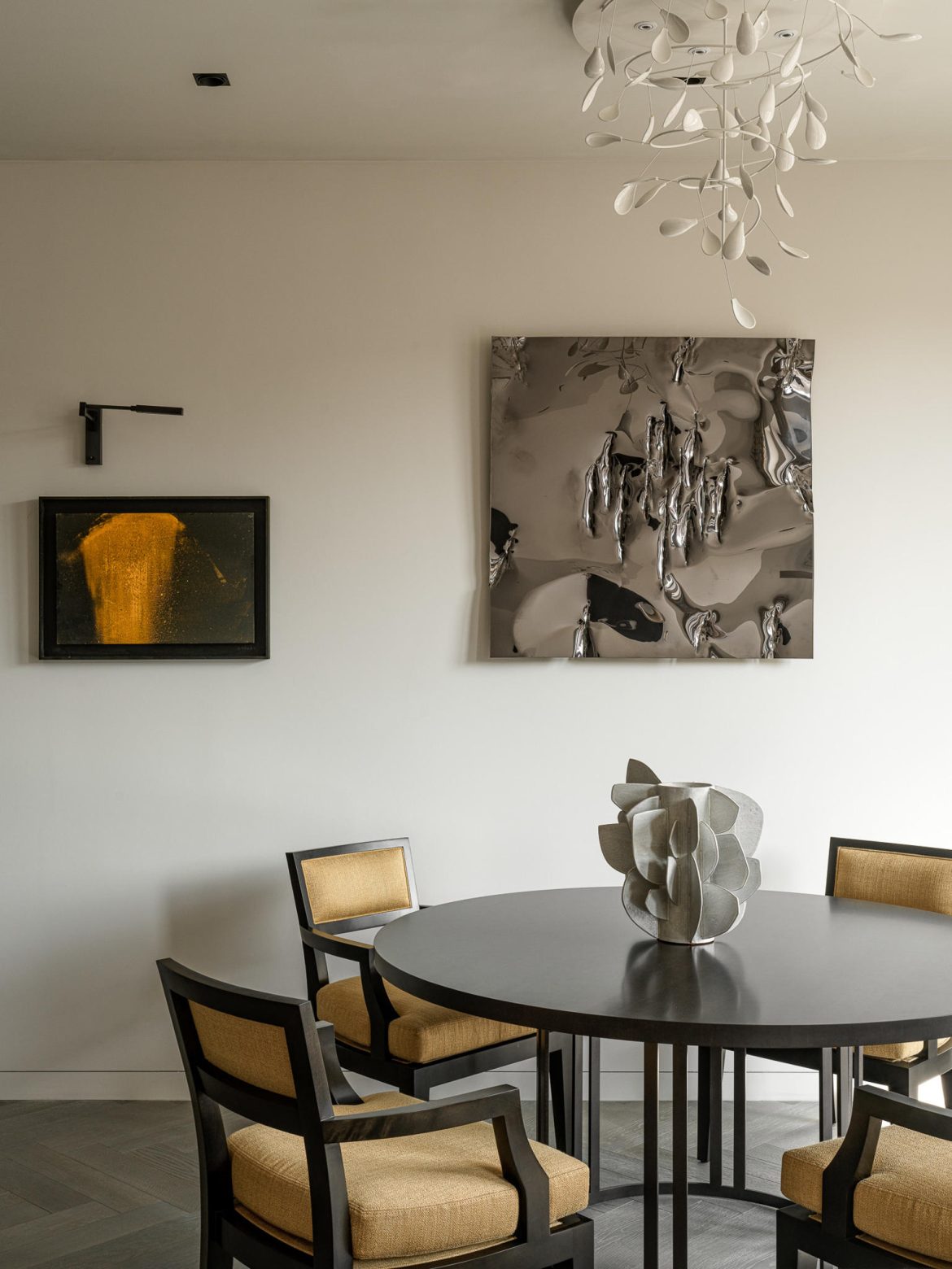 Art is not applied; it is integrated. Works by John Franzen, David Saborido, and Ivan Glazkov operate as conceptual and compositional focal points. Their presence establishes a dialogue between surface and volume, silence and expression. Each piece was positioned to interact with proportion, sightlines, and natural light — reinforcing the idea that art defines spatial identity rather than embellishing it.