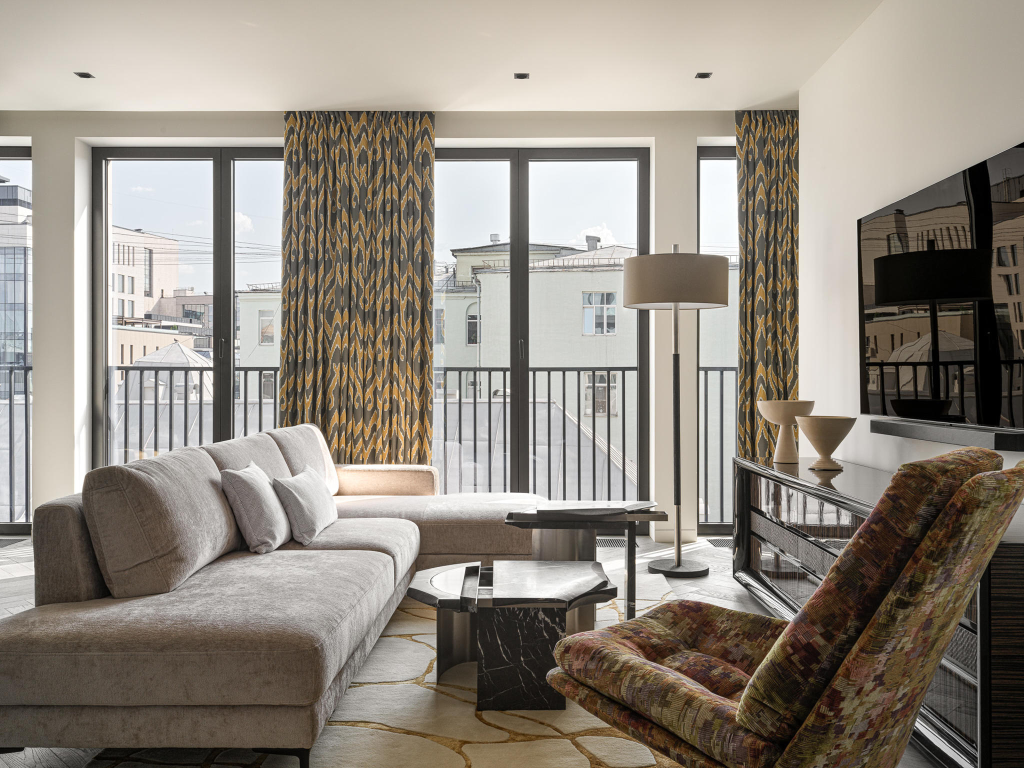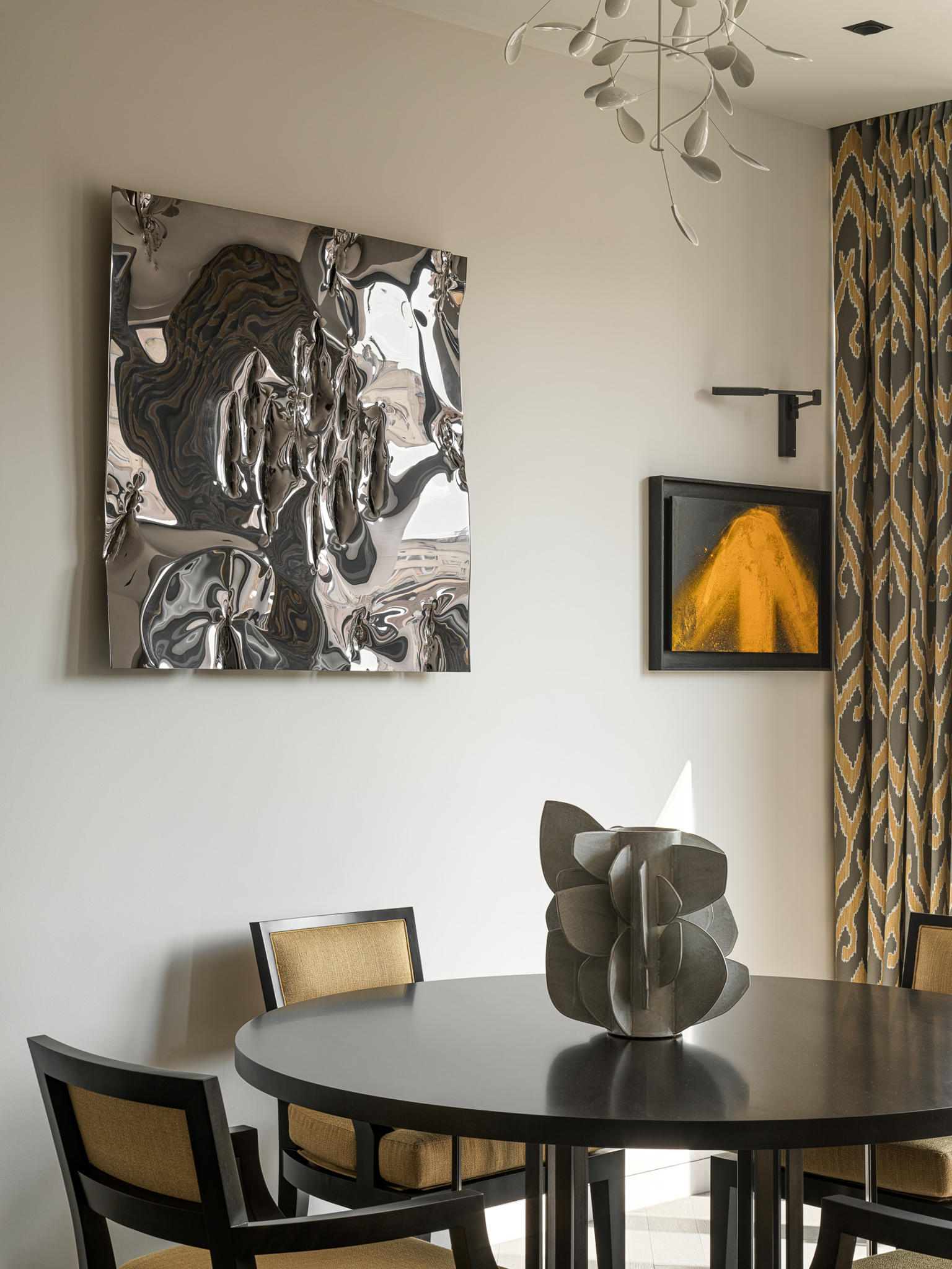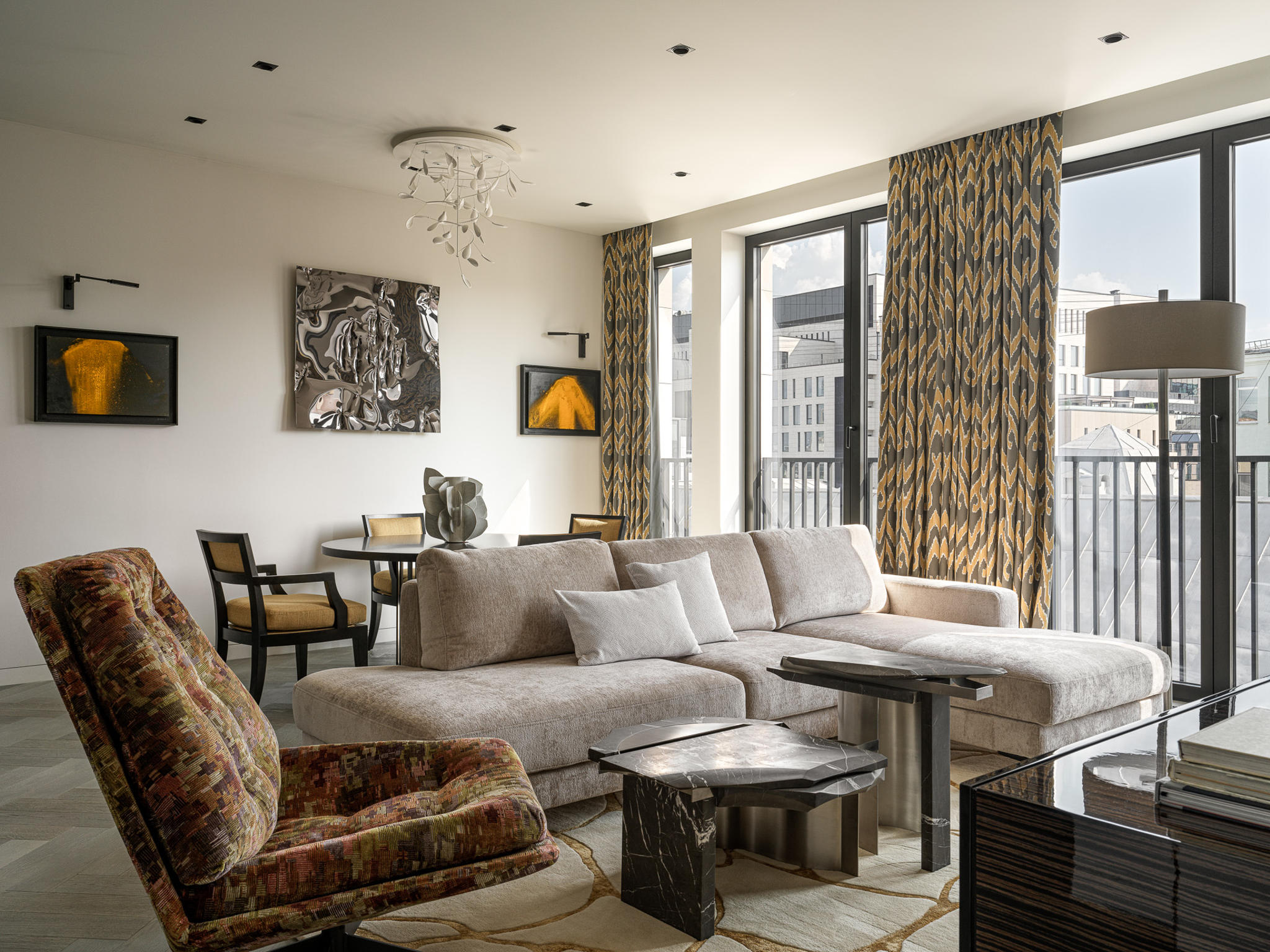 Art is not applied; it is integrated. Works by John Franzen, David Saborido, and Ivan Glazkov operate as conceptual and compositional focal points. Their presence establishes a dialogue between surface and volume, silence and expression. Each piece was positioned to interact with proportion, sightlines, and natural light — reinforcing the idea that art defines spatial identity rather than embellishing it.