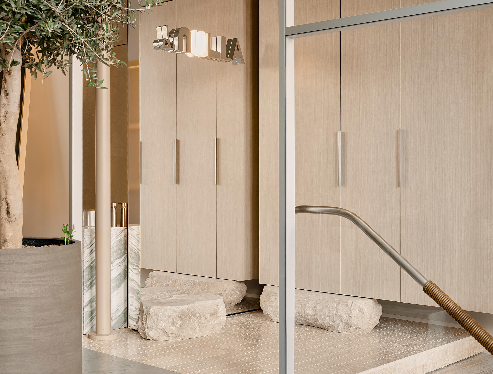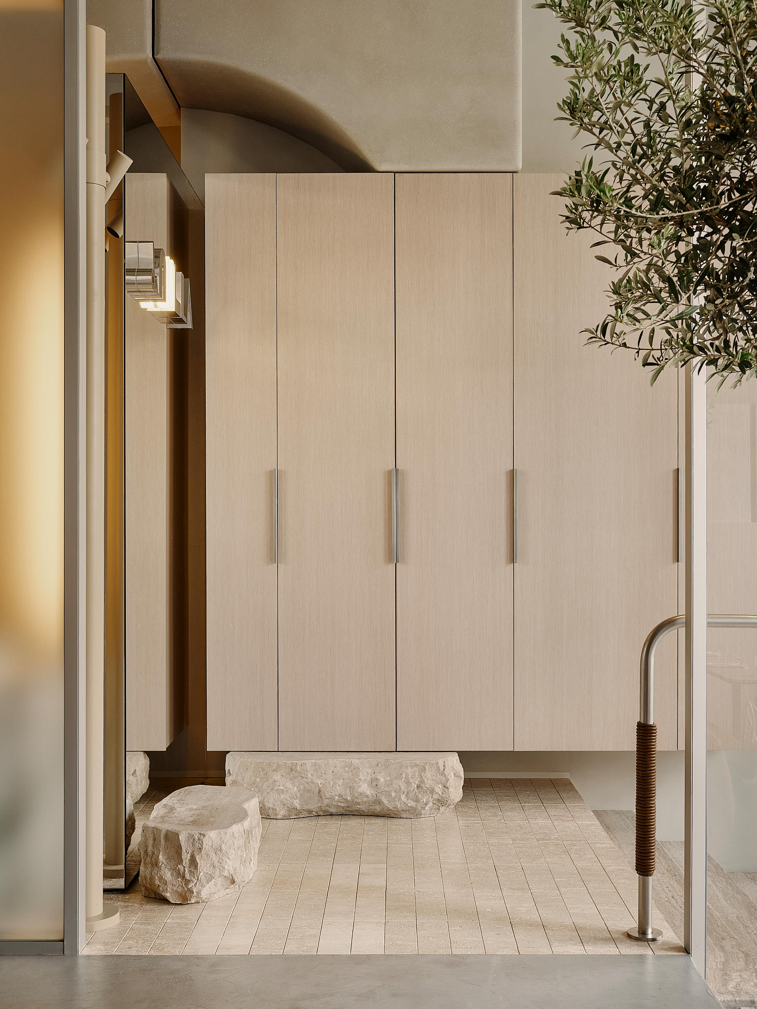 To capture a sense of hedonism and freedom, we drew inspiration from the image of fashionable, fast-paced Milan, a city where street life flows naturally in its own vibrant rhythm. From this came the idea of ‘controlled chaos’, expressed in the architectural composition: shifted axes, varied textures, irregular geometry – all coming together to create an atmosphere full of energy and movement.