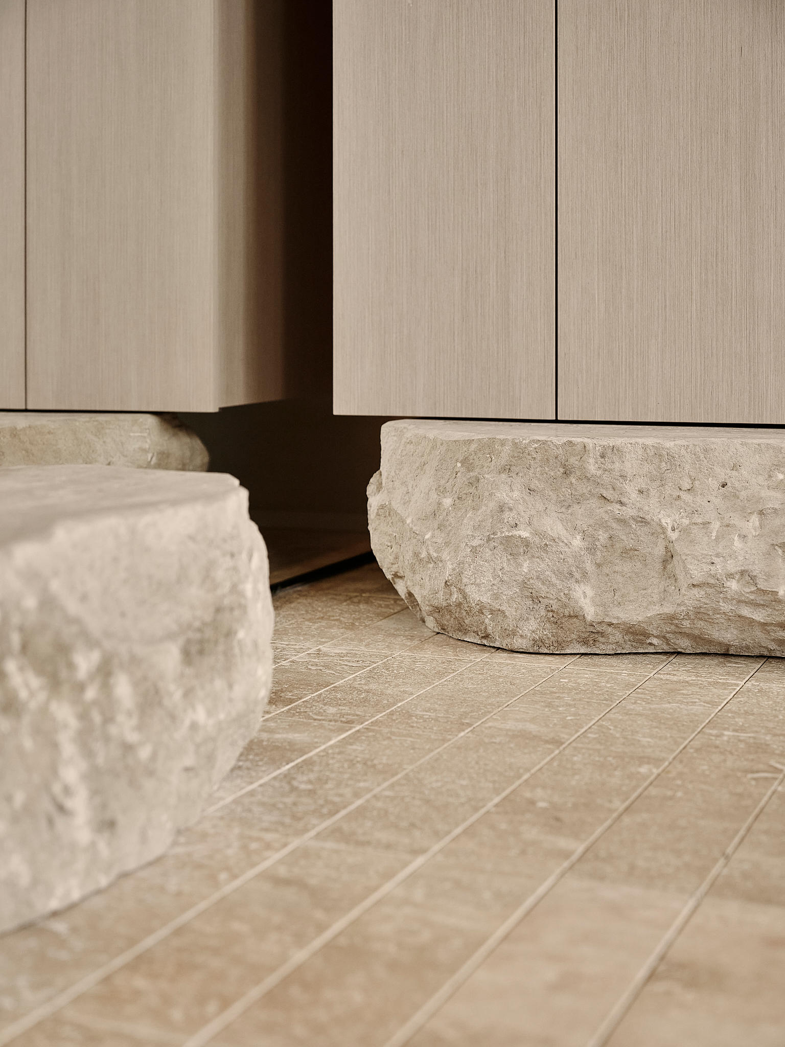 In contrast to the main hall’s dynamic energy, two more private areas are set slightly lower than the central space.