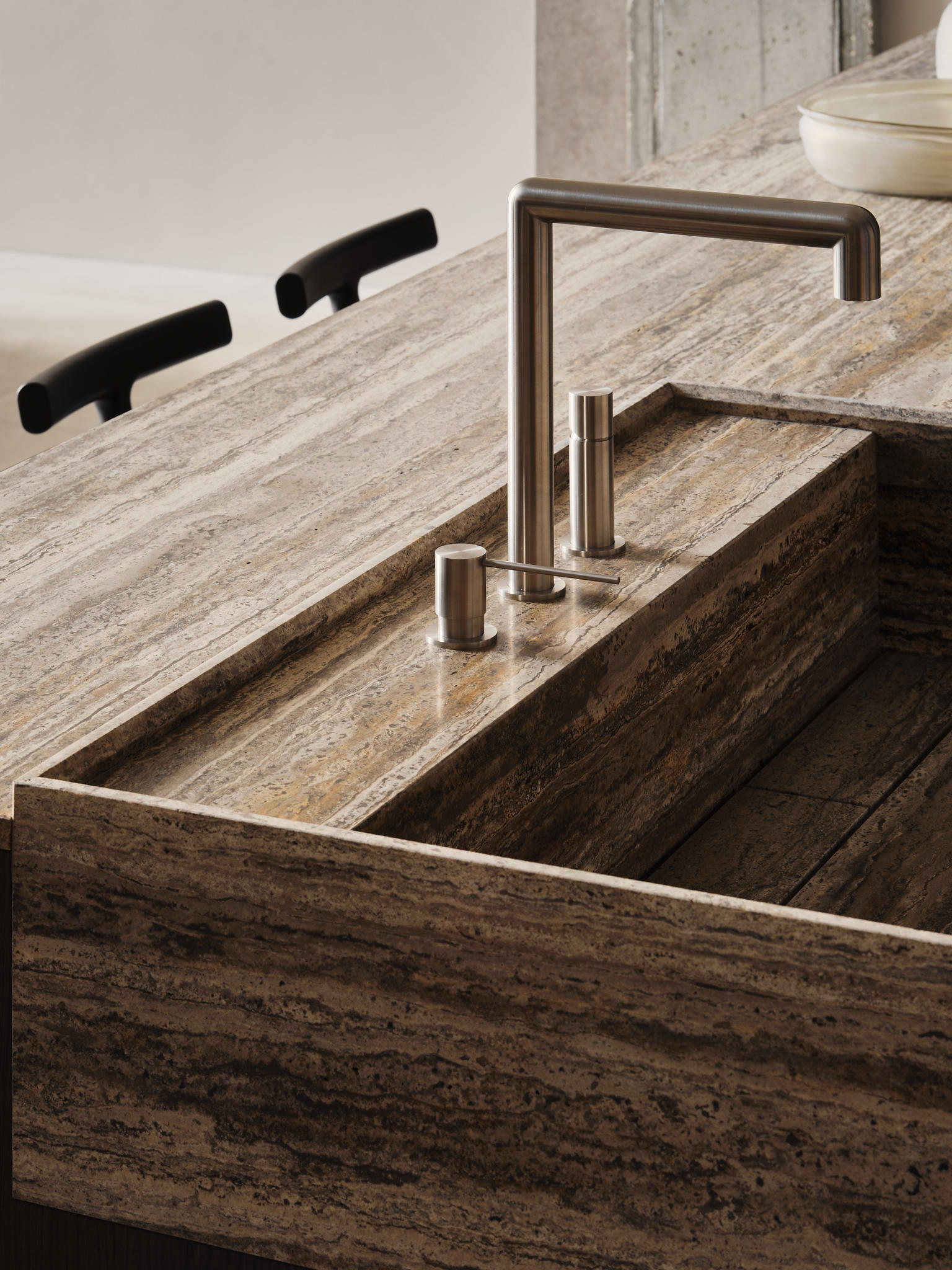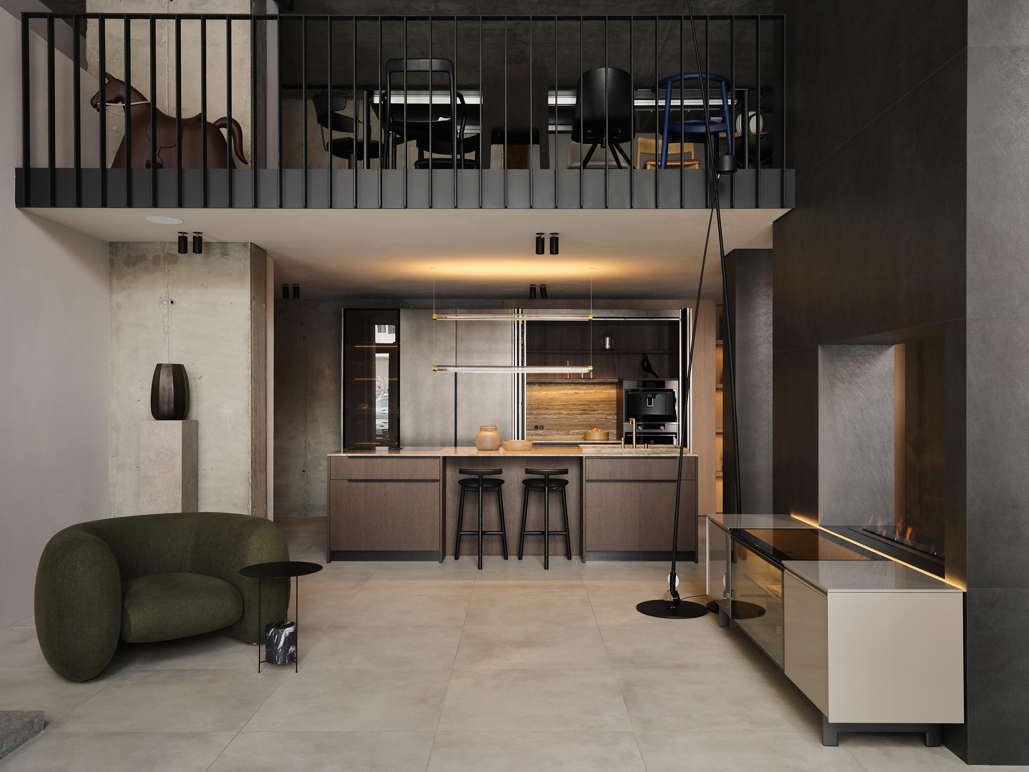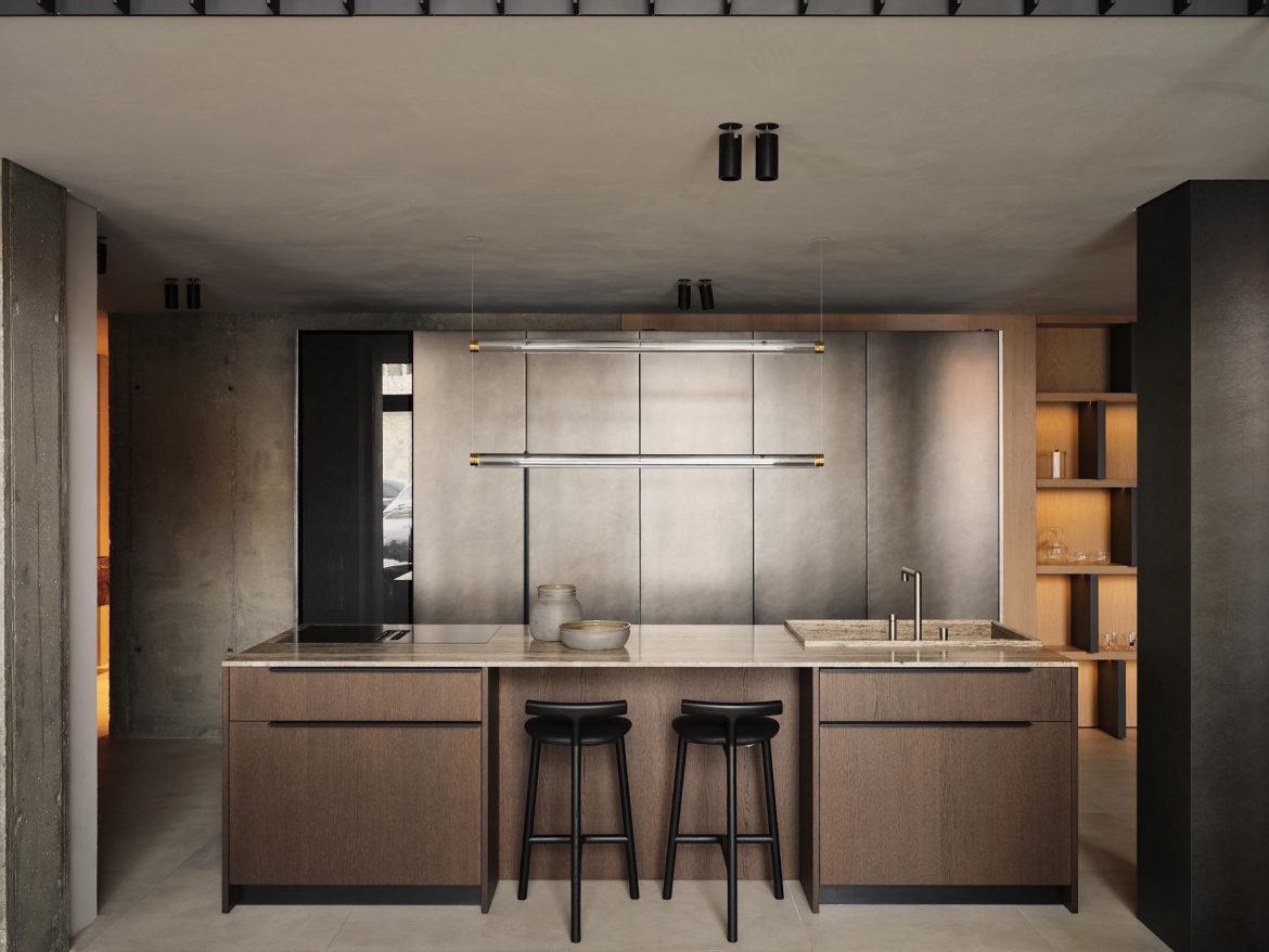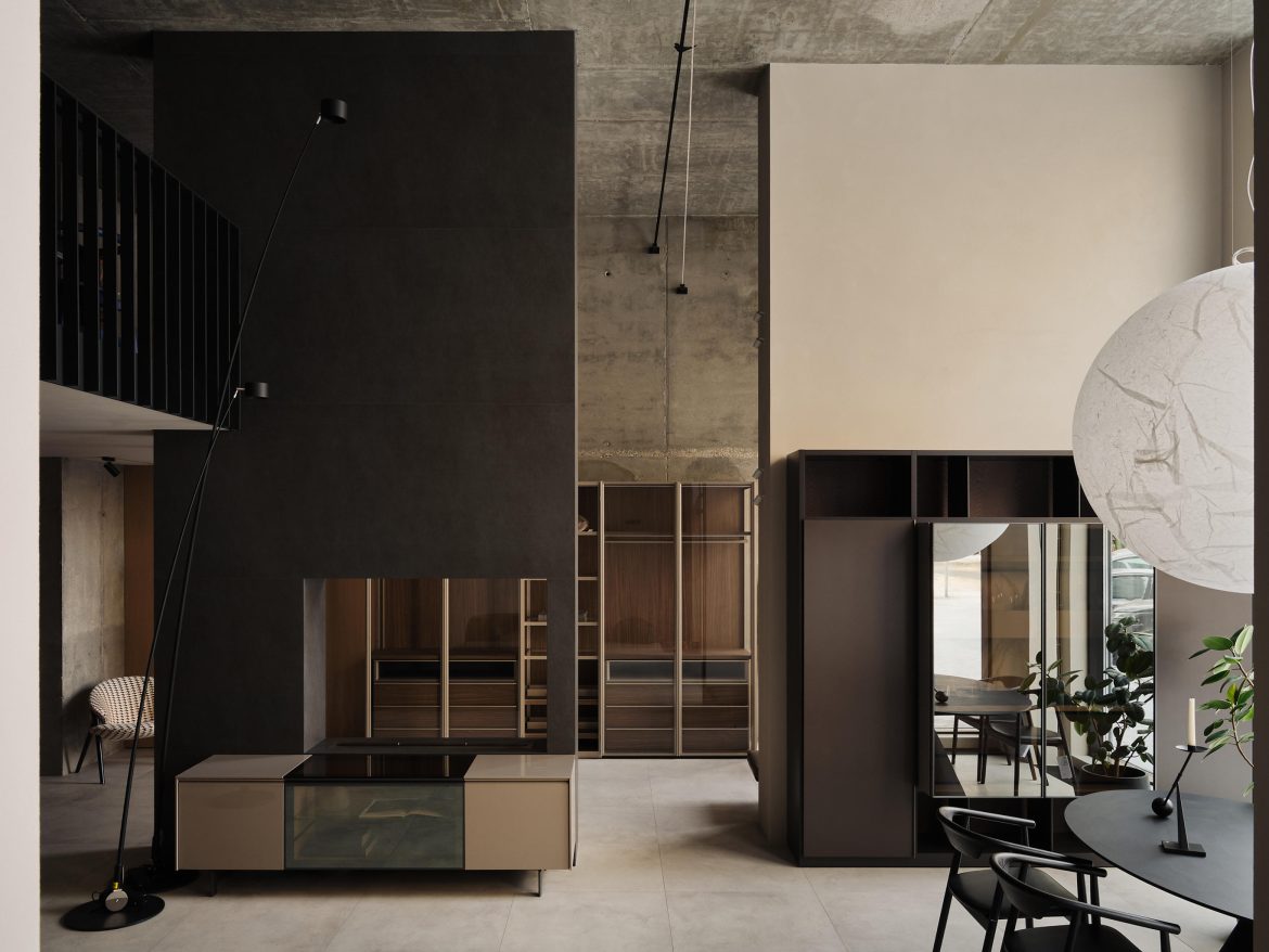 The concept of aesthetics and premium brands defining this space unfolds on two levels. One of the main tasks was to create a place where you can feel the whole essence of the correct formation of design. We changed the architecture of the space itself, built a mezzanine, updated the facade – increasing the display cases to show the beauty of the new showroom.