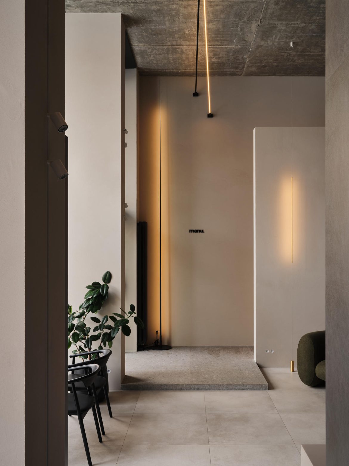 New project Architectural studio Quadrum interior showroom MANU, where two strong brands have combined their capabilities – style and beautiful product, vision of style and final result.