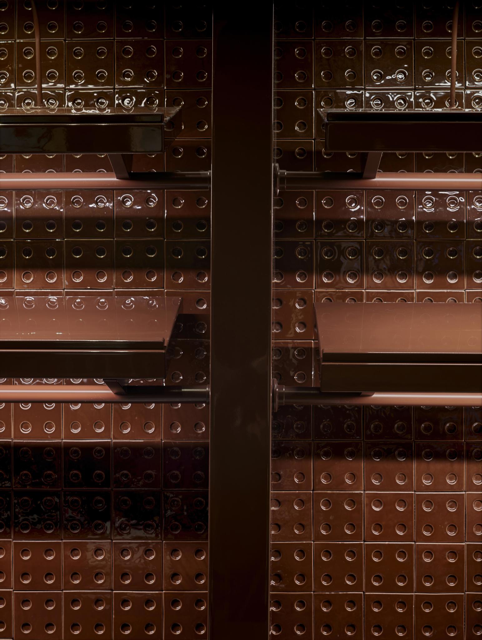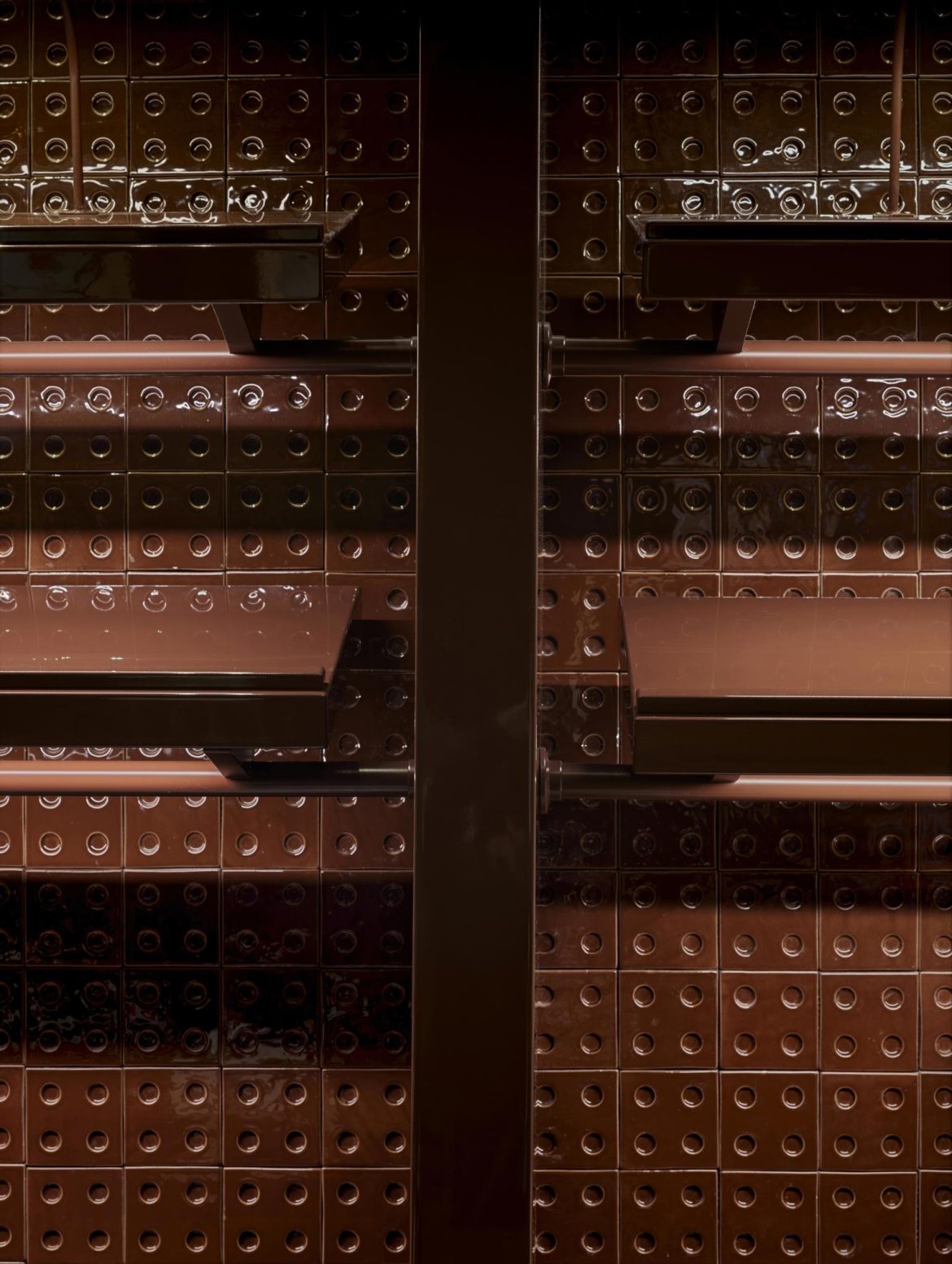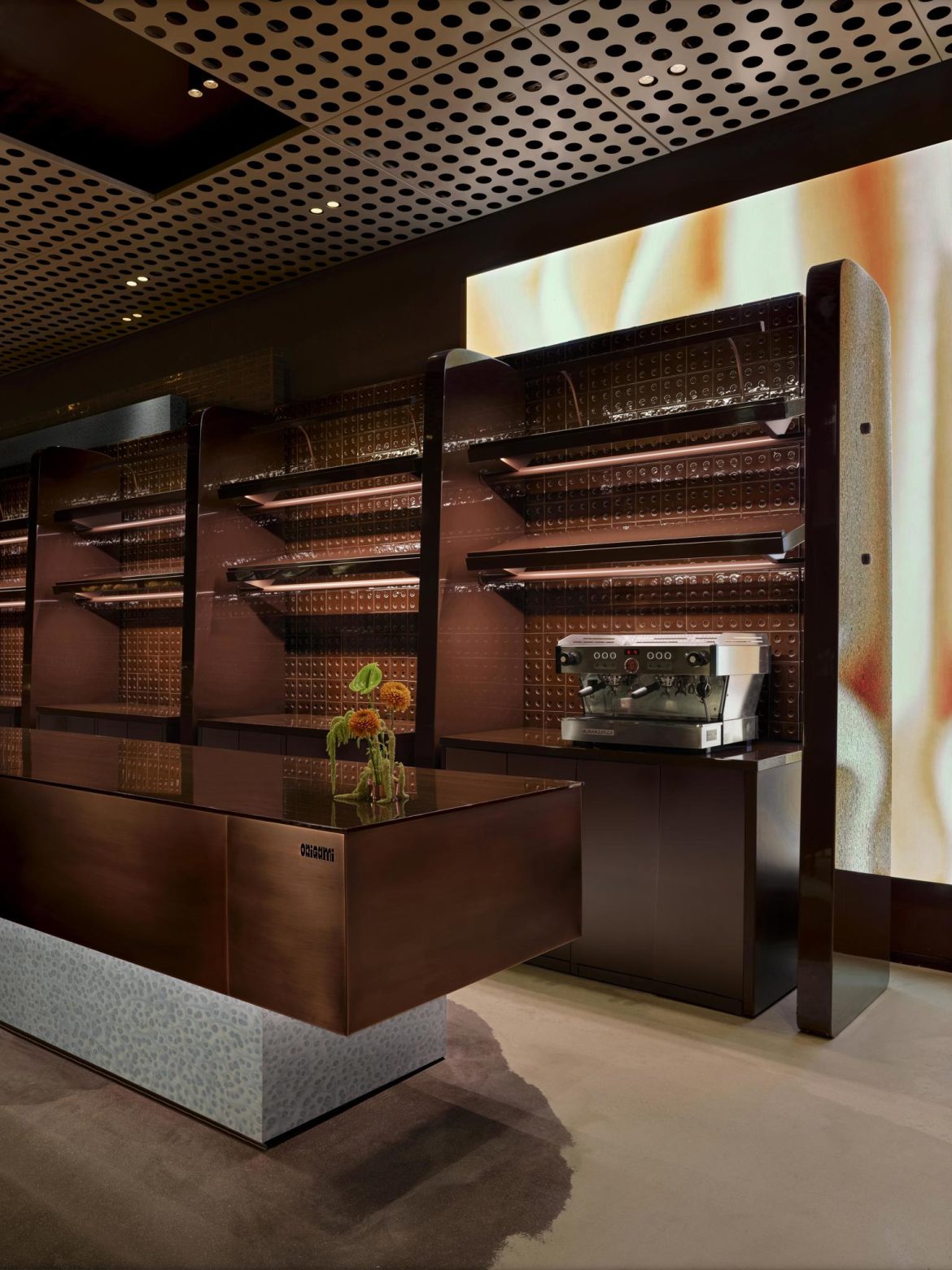 Detail resolution is fundamental to the project. Junctions between glass, metal, and timber are sharp and controlled; display vitrines are frameless where possible, minimizing visual noise. The architecture does not rely on decorative gestures. Instead, it constructs identity through proportion, repetition, and material precision.
