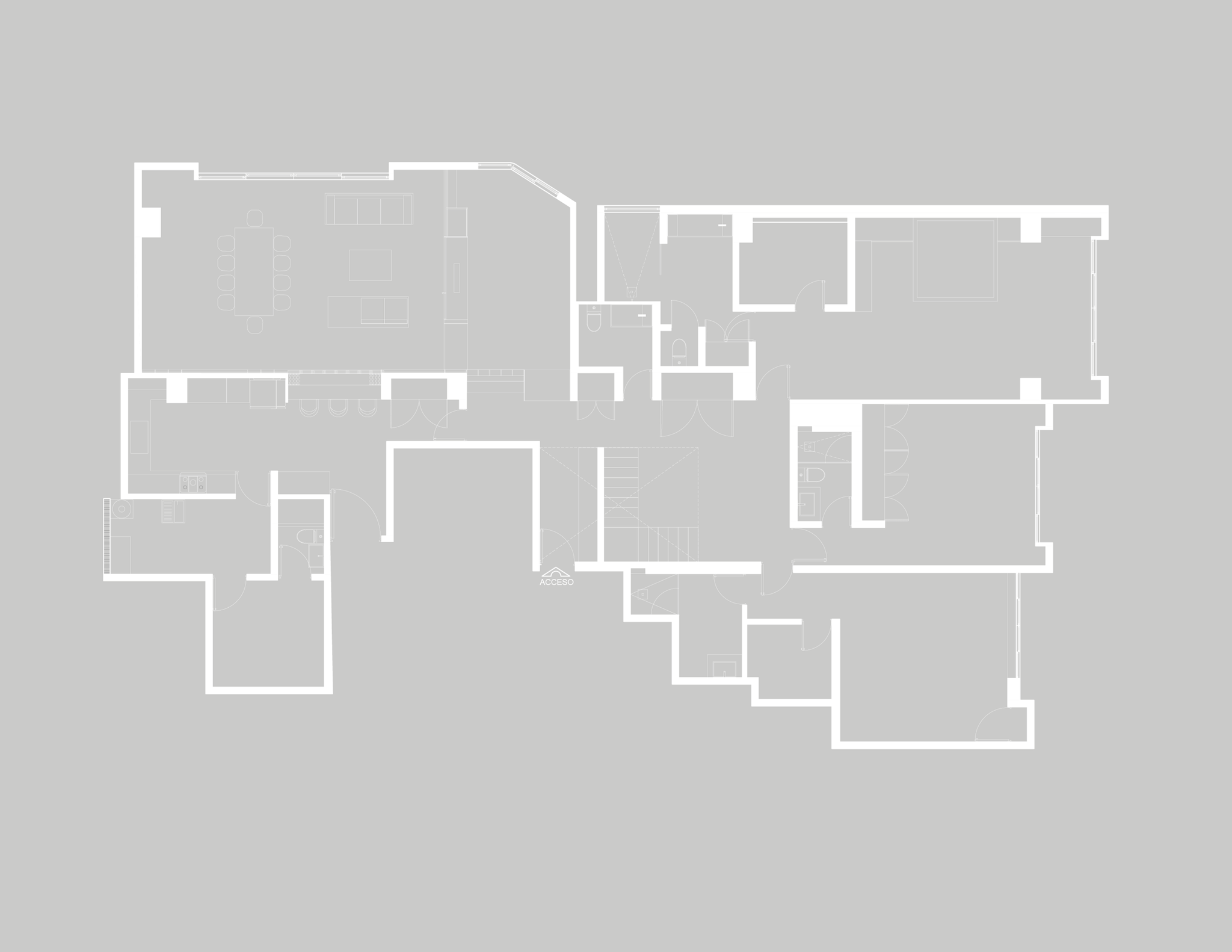 The intervention began by removing all the interior walls, which allowed for a reconfiguration of the layout and the creation of a double height space at the entrance. From there, the house acquires a vertical presence that shapes the experience of moving through it.