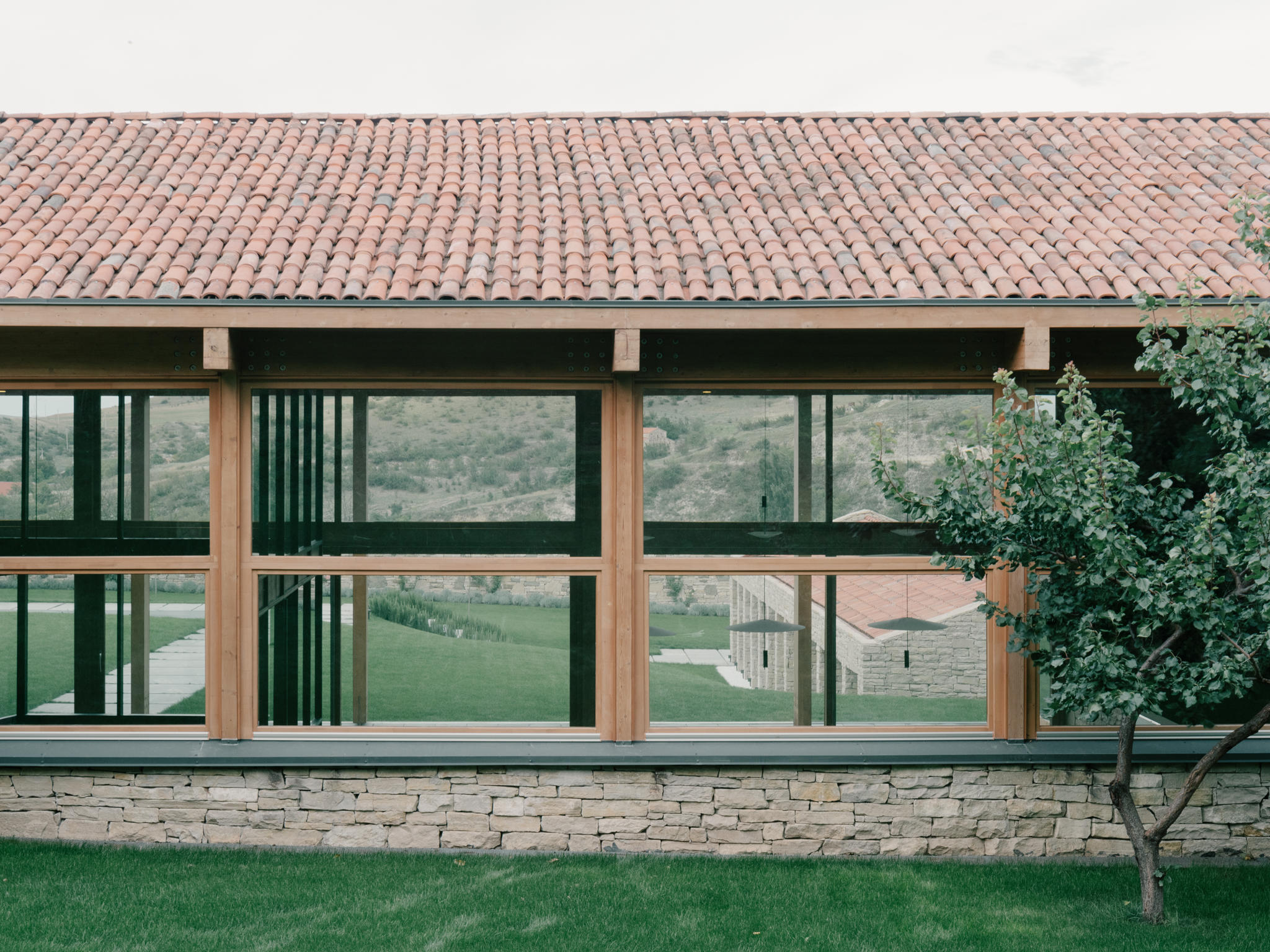 The design also includes a cellar positioned perpendicular to the main house. This space serves a functional role, while maintaining the same architectural language as the primary volume. Its placement and design reinforce the overall spatial harmony of the site and contribute to a sense of architectural unity across the property.