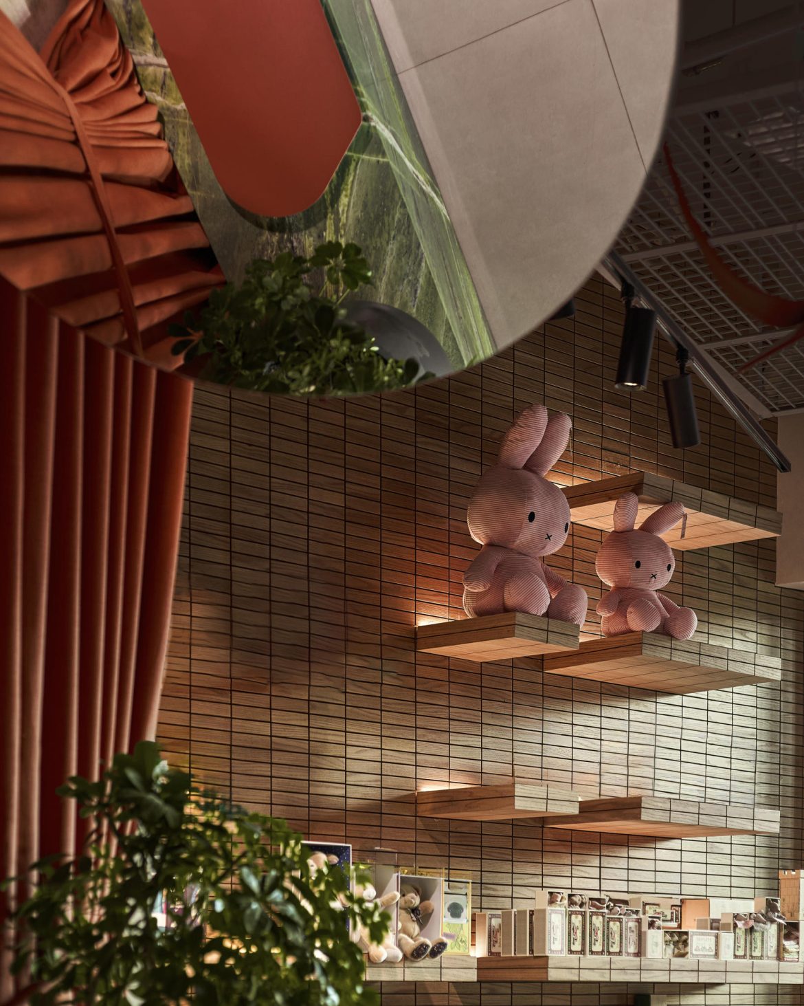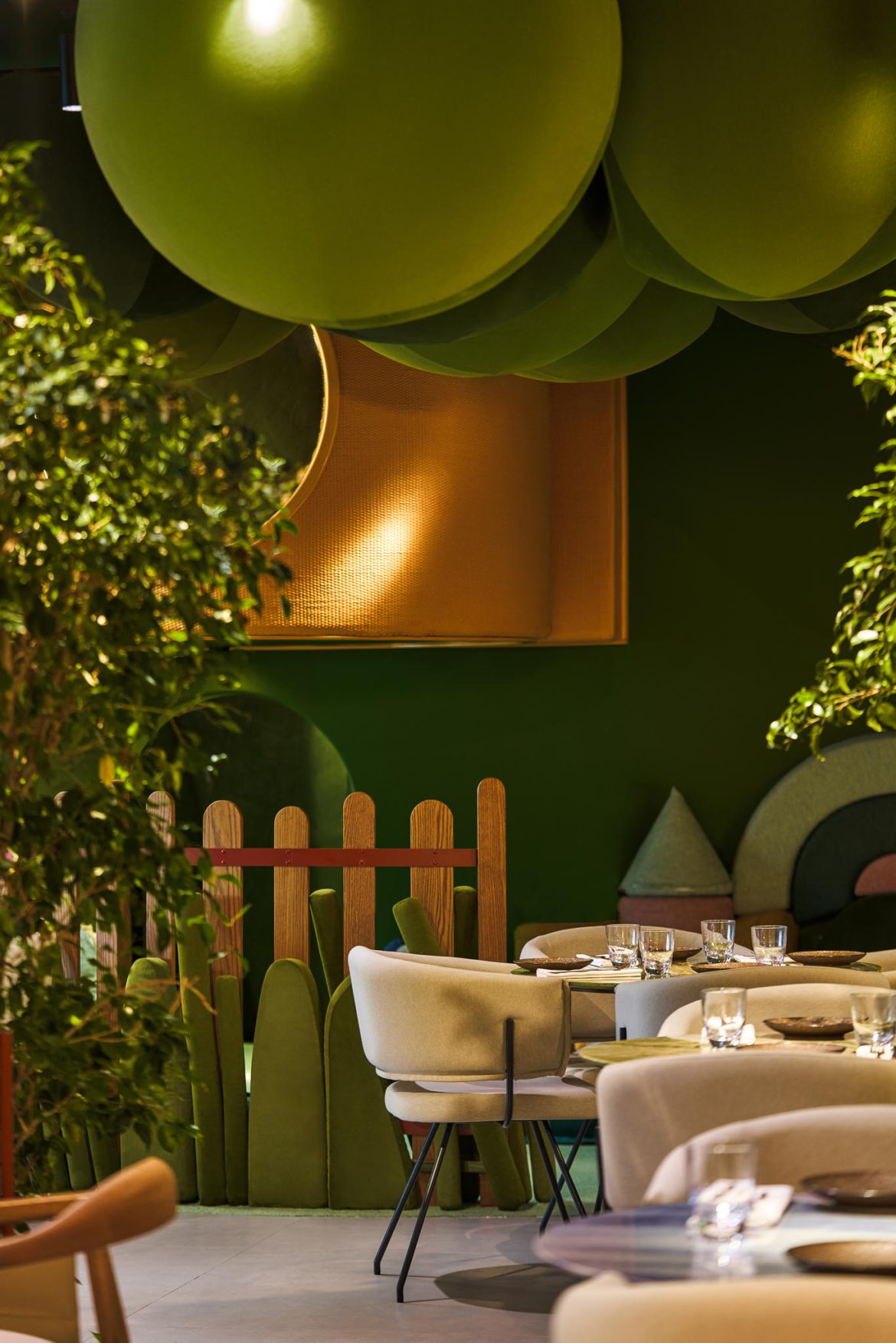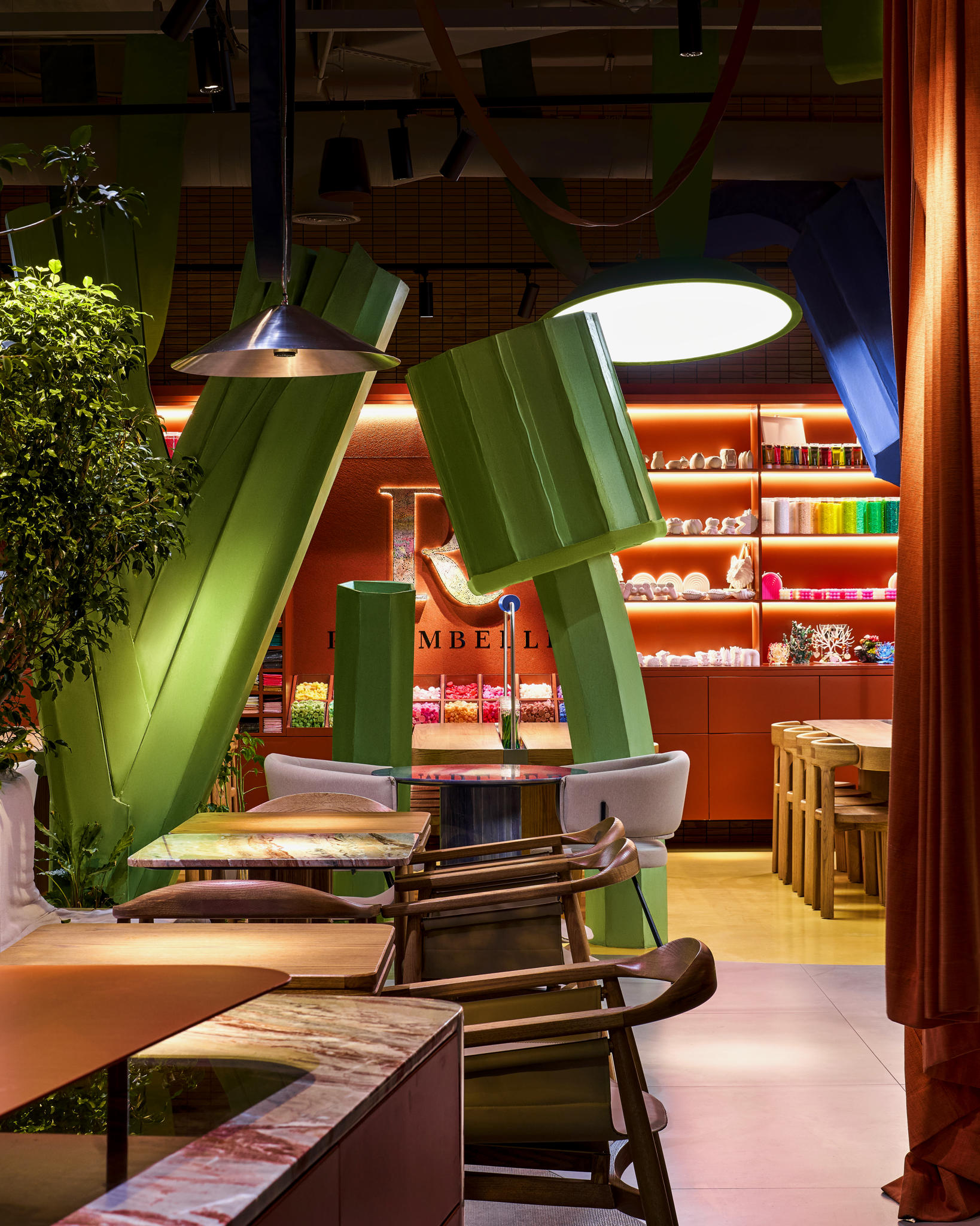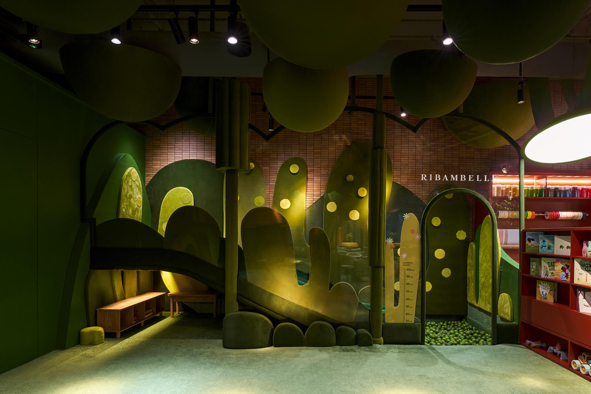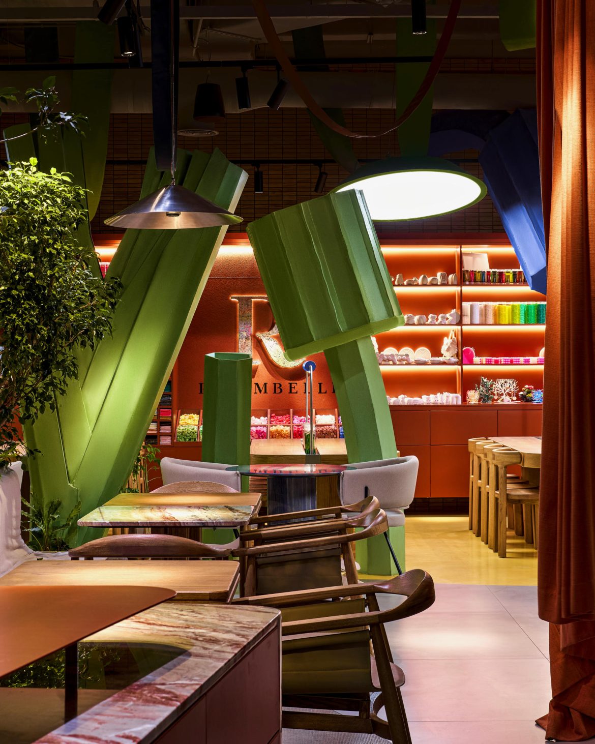 The visual concept of Ribambelle is based on the idea of making a natural oasis in the glass jungle of Dubai, where there are practically no green recreational areas. Hence, here we have recreated a secluded park drenched in greenery.