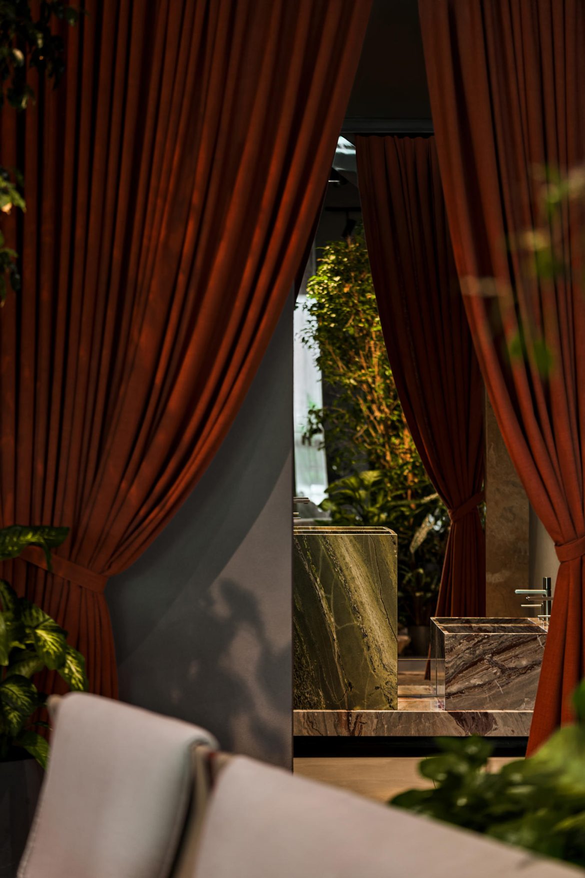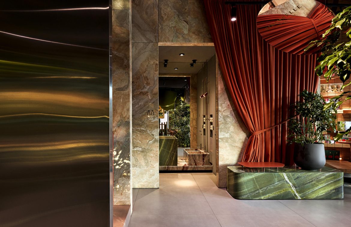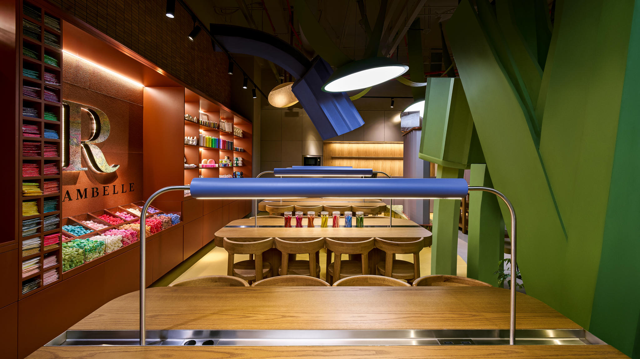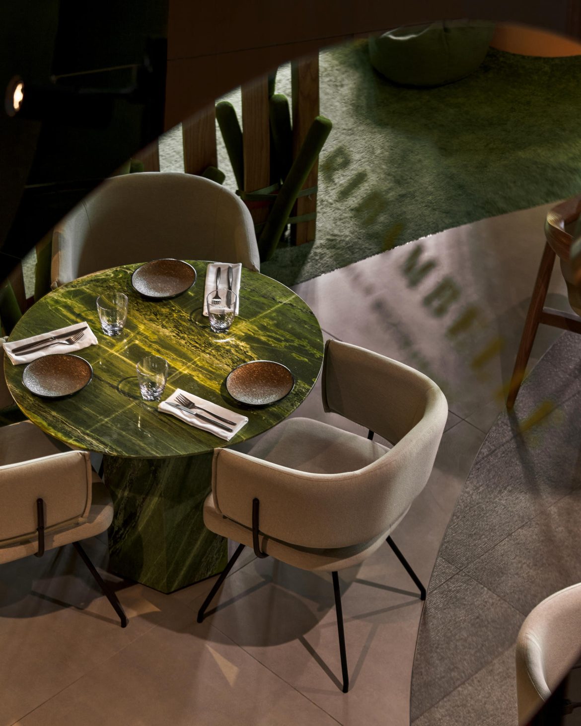 The visual concept of Ribambelle is based on the idea of making a natural oasis in the glass jungle of Dubai, where there are practically no green recreational areas. Hence, here we have recreated a secluded park drenched in greenery.