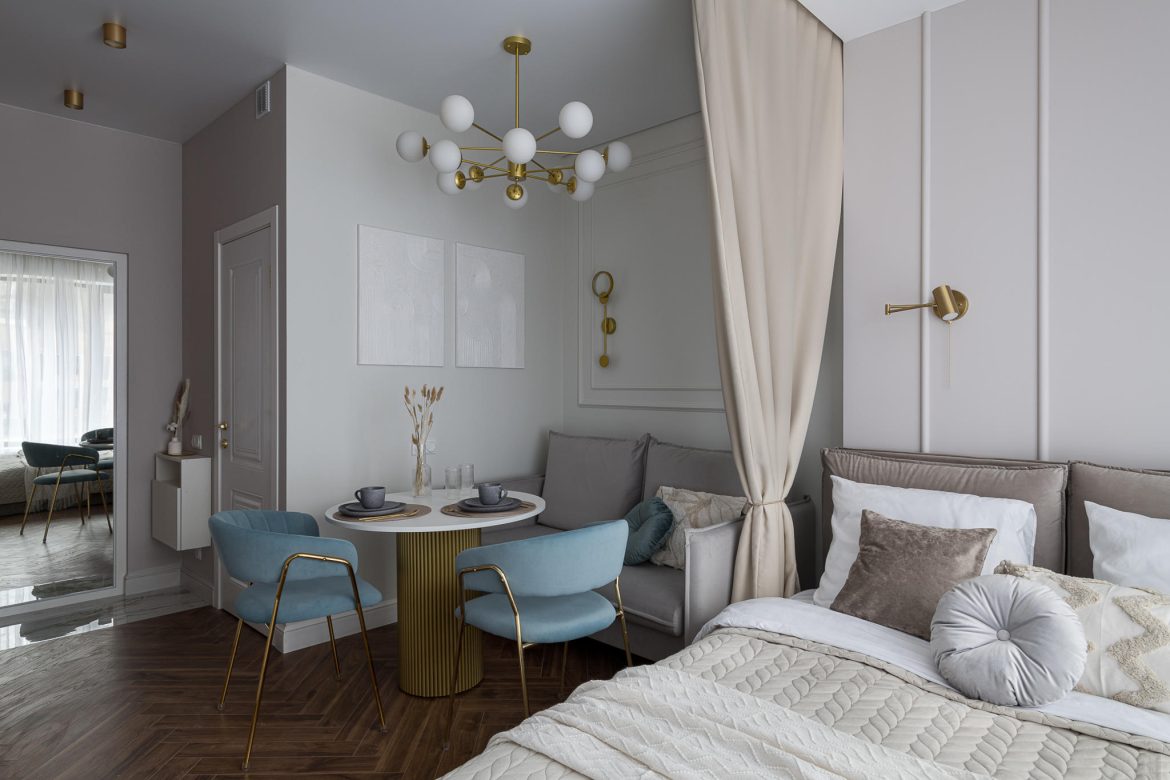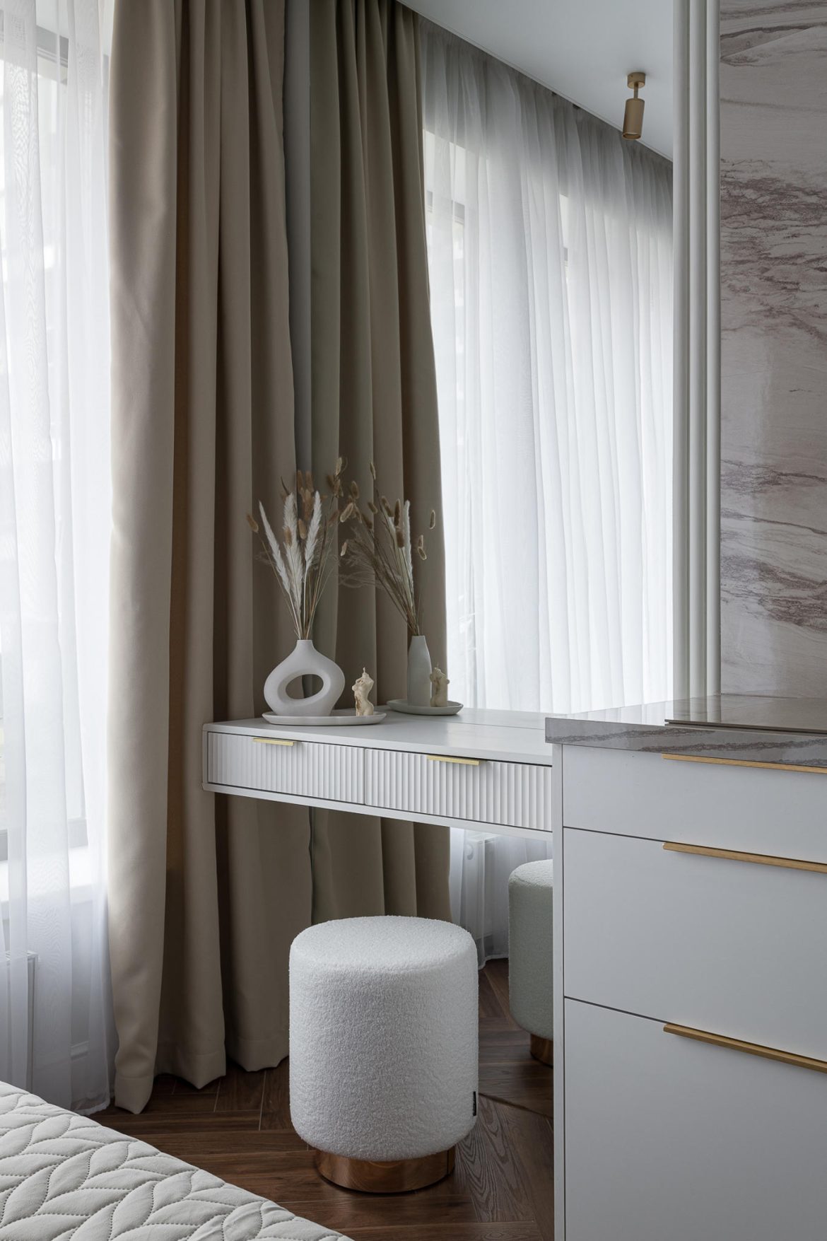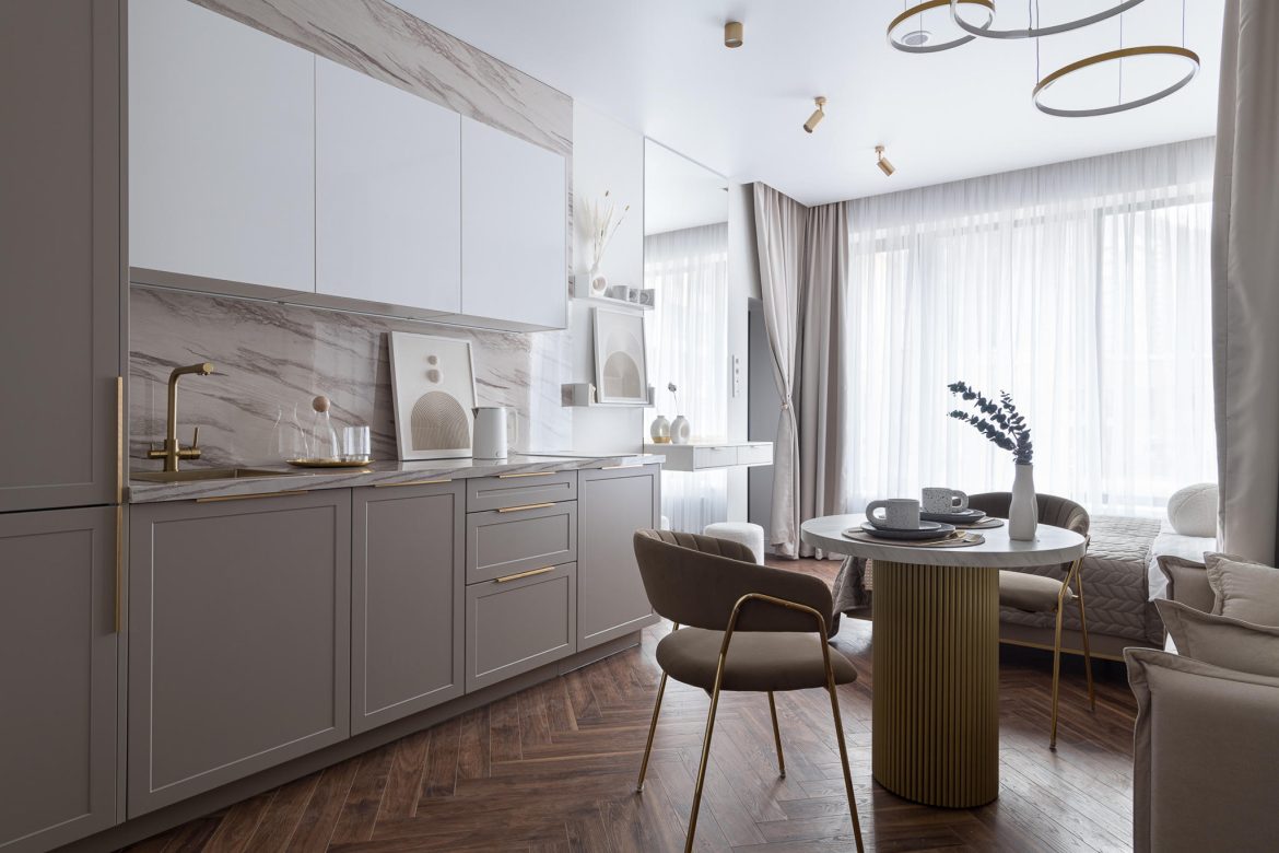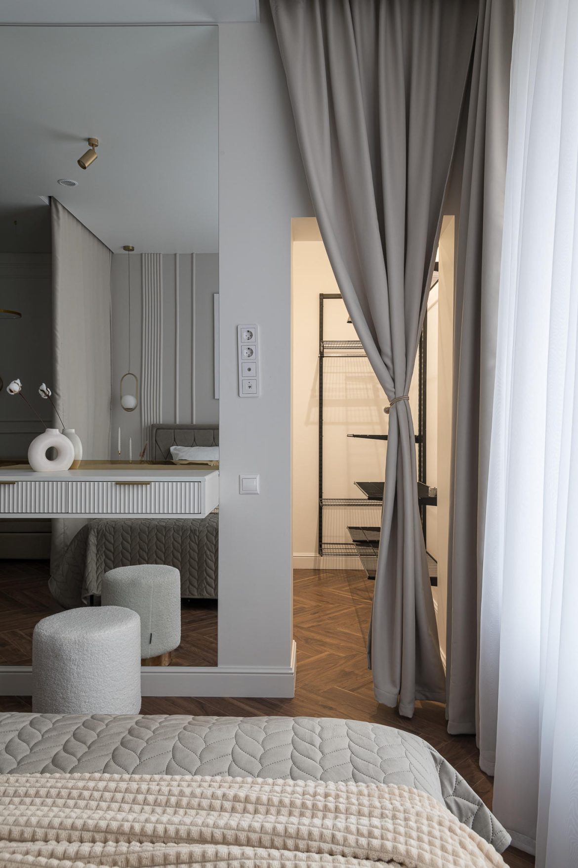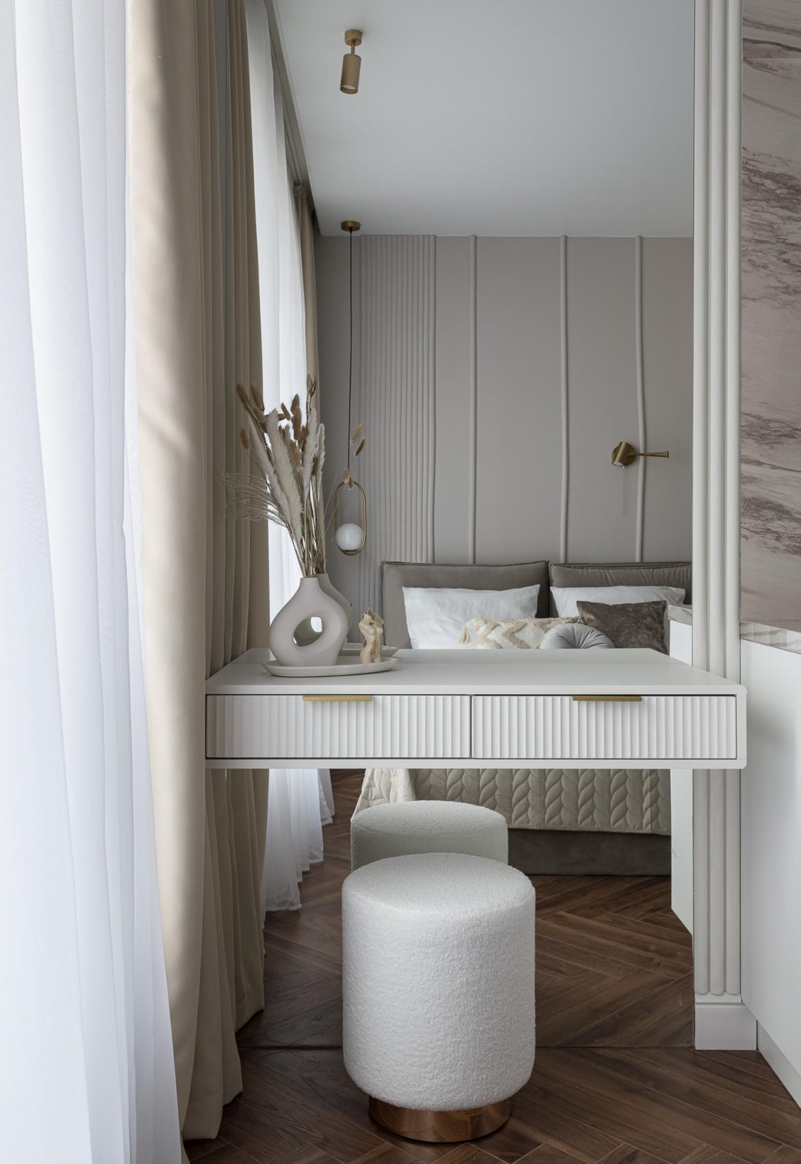 Apartment 1 is more than just an interior; it’s a meticulously designed environment for stylish, fulfilling, and comfortable living. Here, neoclassicism meets the latest interior trends and practical solutions, and every detail – from color to lighting – harmonizes with the owner’s mood.